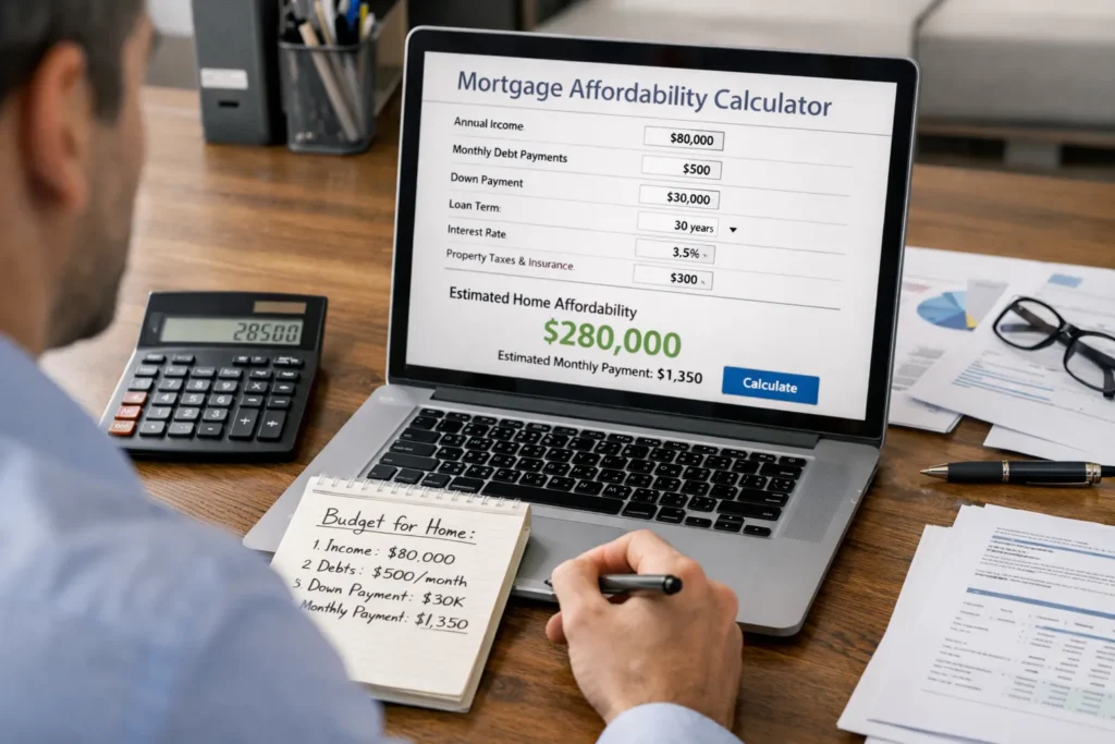A mortgage affordability calculator helps estimate how much home you can reasonably afford based on your income, expenses, and financial profile. While lenders ultimately determine loan approval, these tools provide a useful starting point for planning a home purchase.